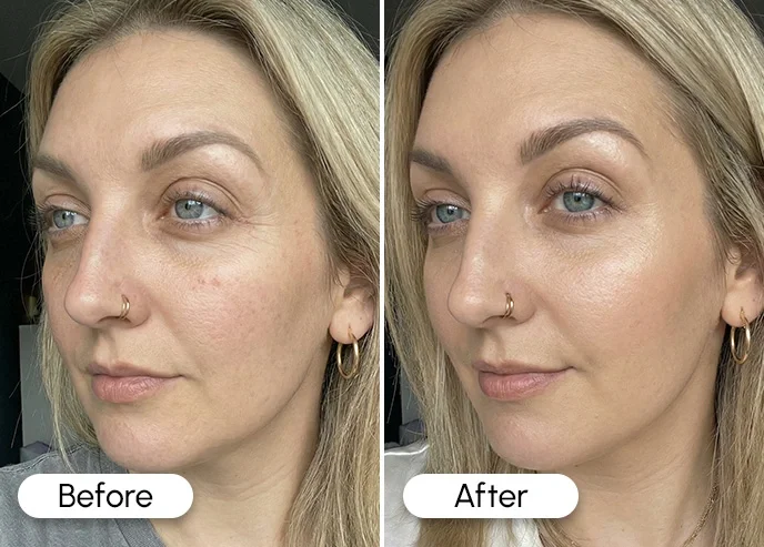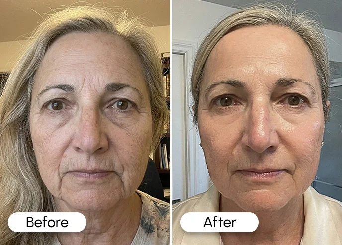 “I didn’t realize how dull my skin had gotten until I compared the photos. The wrinkles around my eyes look noticeably lighter, my tone is more even, and I’m not reaching for foundation like I used to."