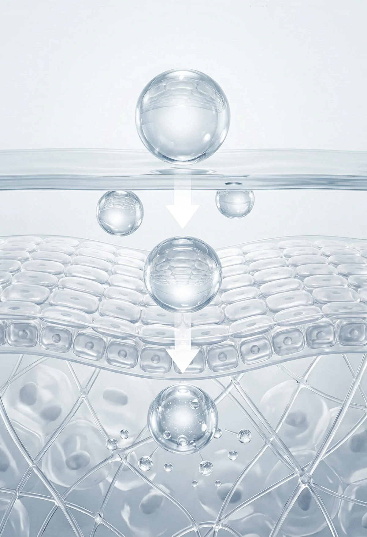 Our hydrogel matrix delivers PDRN and moisture directly into the layers where aging starts, helping your skin recover itself.